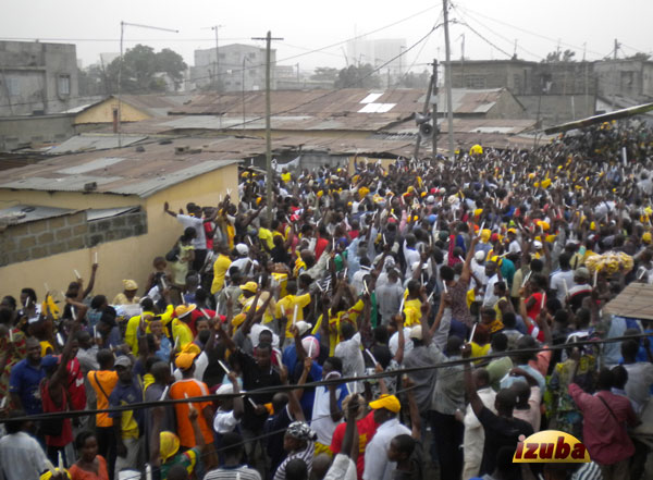 Un quart d’heure plus tard, on entend des explosions. La foule commence à paniquer. Les femmes commencent à évoquer les massacres de 2005. Les explosions se rapprochent. Les grenades lacrymogènes atterrissent dans la foule. C’était pendant l’intervention de la députée Isabelle Améganvi. Bousculades ! Panique.