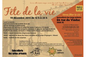 Pour découvrir et déguster certaines des inestimables merveilles de la vie, je vous invite à vous joindre à moi ce 19 décembre 2015, dans l’espace de la Quincaillerie des temps présents, 64 rue du viaduc à Ixelles.