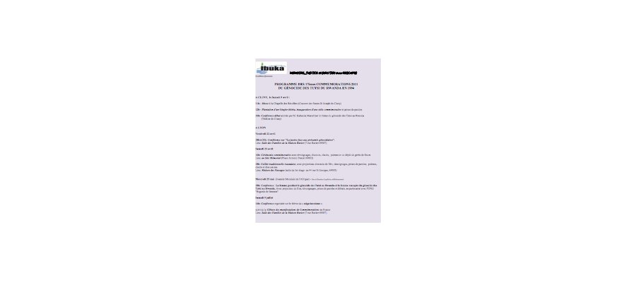 L’association Ibuka France, vous prie de bien vouloir assister à l’inauguration de ce premier monument du génocide des Tutsi au Rwanda, et de vous joindre à elle pour féliciter la Marie de Cluny pour ce geste d’immense humanité.